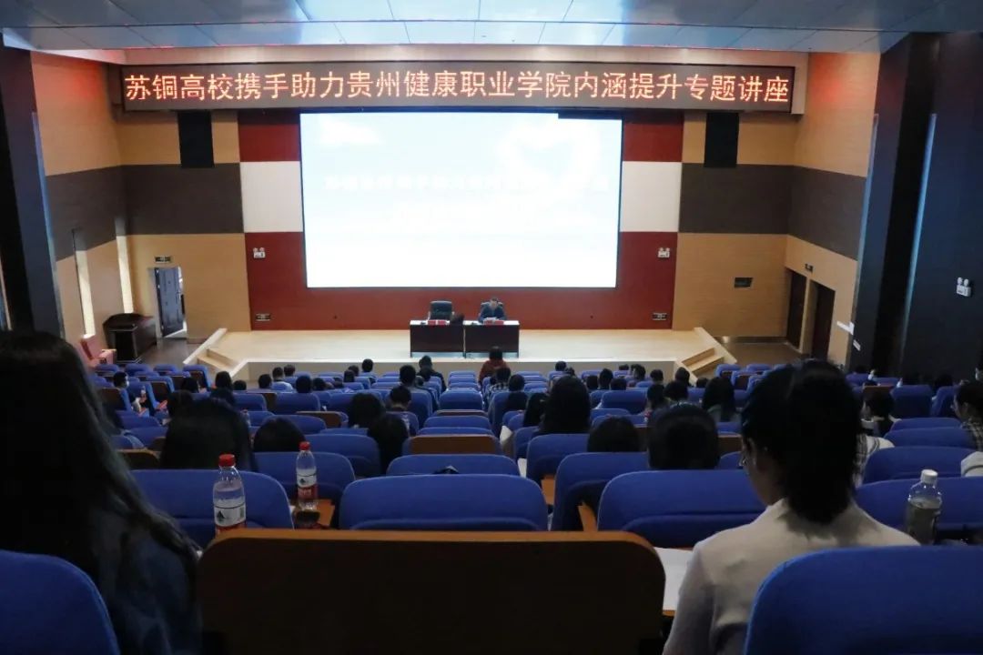 苏州卫生职业技术学院专家组一行、我院各相关部门负责人、教师代表等参加会议或聆听讲座。