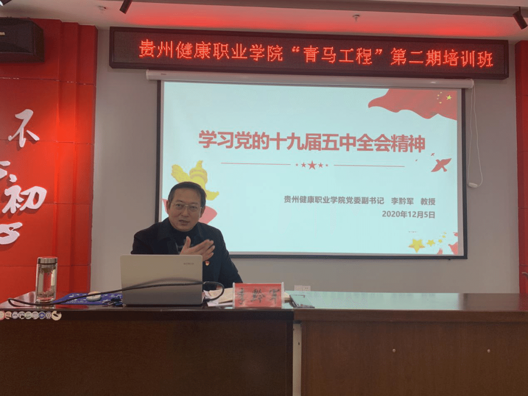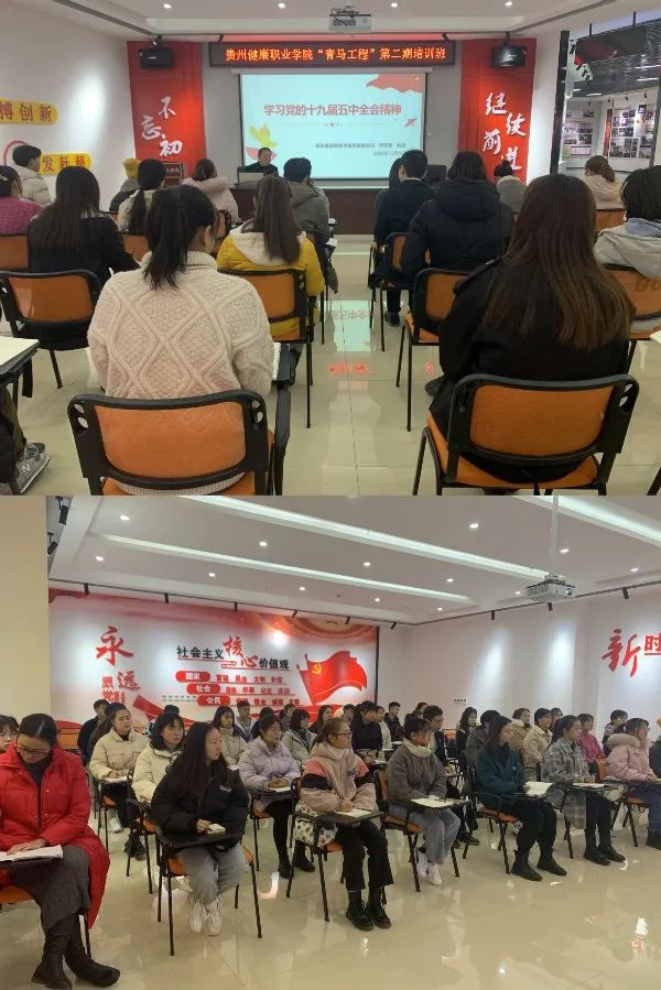 12月5日,院党委副书记李黔军为第二期“青马班”学员宣讲党的十九届五中全会精神,会议由团委书记廖东梅主持。