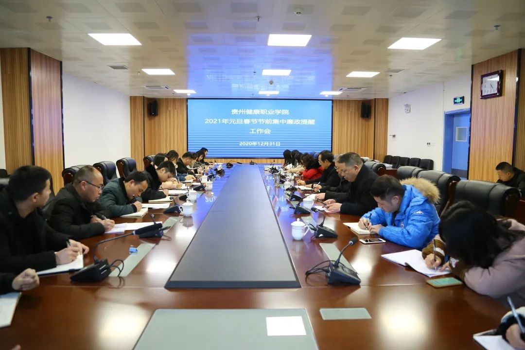 12月31日,学院党委副书记李黔军主持召开2021年元旦春节节前集中廉政提醒工作会,就元旦、春节期间纠正“四风”问题提出明确要求。院领导唐康、龙宪碧、袁继鸿、刘艳,各部门负责人参加会议。