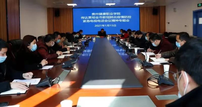 1月15日下午,我院召开传达贯彻全市新冠肺炎疫情防控紧急电视电话会议精神专题会,安排部署学院新冠疫情防控工作。院党委副书记李黔军主持会议并讲话,党委委员、工会主席王锡林及党委委员、党政办公室主任王晶韵出席,各部门、各系负责人(联系人)参加会议。