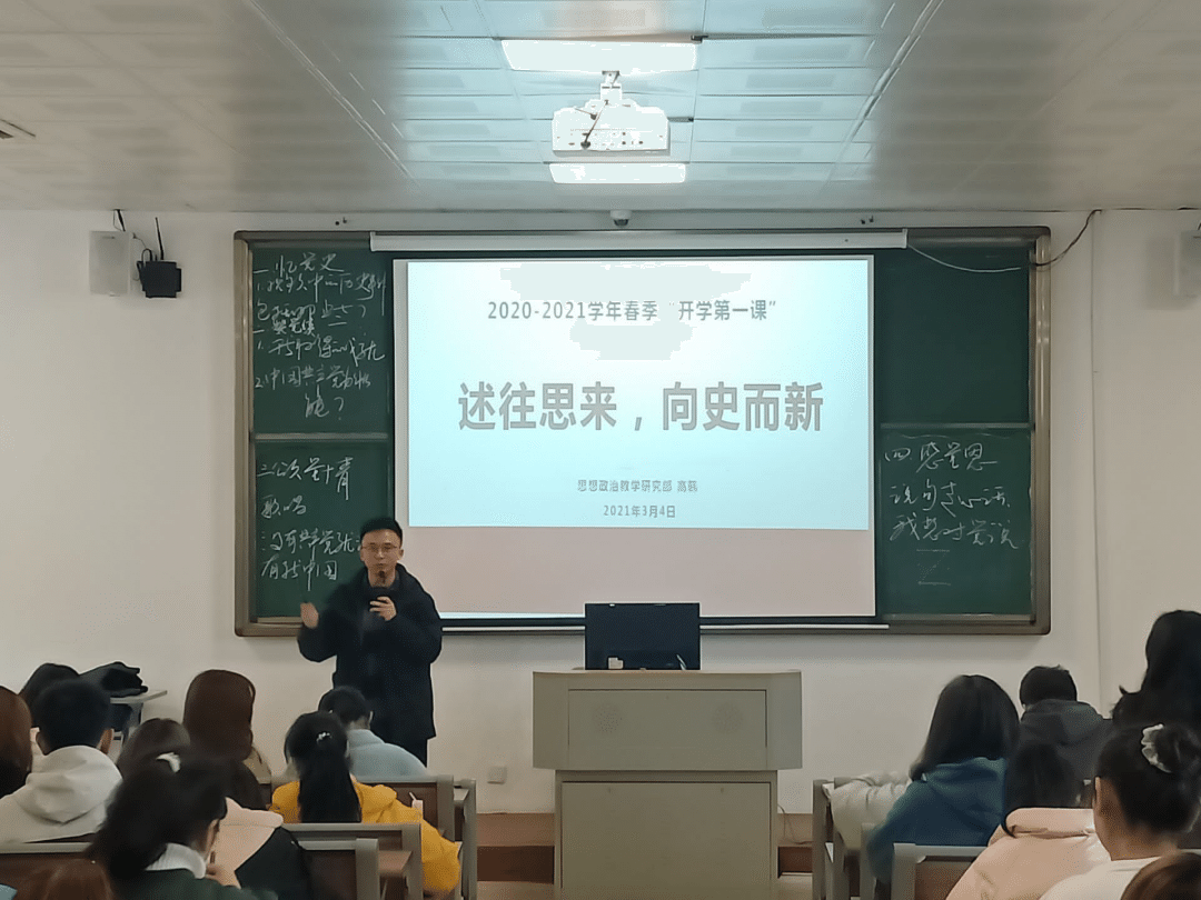2021年春季开学的第一天,同学们在思想政治理论课堂上以慷慨激昂的歌声庆祝中国共产党百年华诞。