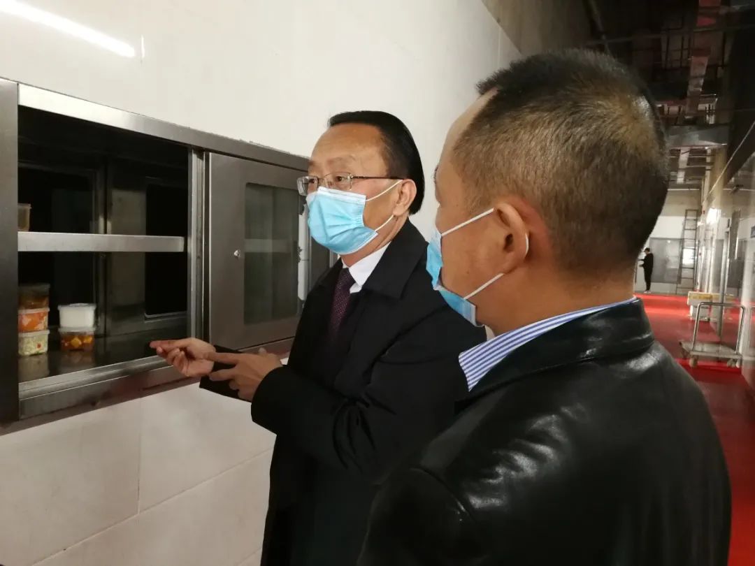 龙宪碧一行先后前往学生一食堂、二食堂,对后厨、餐具洗消间、菜品加工间、调味品仓库、主食仓库、冷库及食品销售档口进行了细致查看。龙宪碧对存在问题提出了现场整改要求,对食品进出台账、索证索票及食品留样等工作作了现场指导。