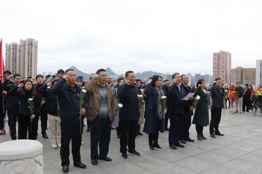 4月1日,细雨霏霏,云天低垂,院党委书记黄霞率班子成员及各支部党员代表40余人来到铜仁市碧江区烈士陵园开展“铭党史·祭先烈”清明扫墓活动,缅怀革命先烈,接受精神洗礼,铭记党史,汲取前行力量。