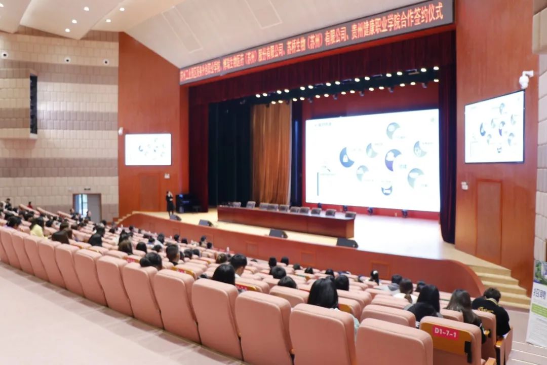 “我们公司成立于2017年6月,是中国发展最快的纯粹CDMO公司。主要的业务为:成药性研究、细胞株开发、检测、配方及工艺开发、GMP细胞库及细胞系表征等。公司有强大的资金融入,卓越的核心团队。我们通过人才培养体系、学习资源、团建活动等维度,充分展现公司以人为本、重视人才的理念,提升职业幸福感,并对优秀学子的加入表示热忱的欢迎。”苏桥生物(苏州)有限公司代表梁音女士向学生们介绍了公司目前发展现状,分享了苏桥生物(苏州)有限公司的创业故事。台下的同学们被深深吸引。