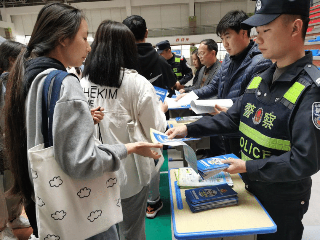 民警和工作人员发放宣传手册