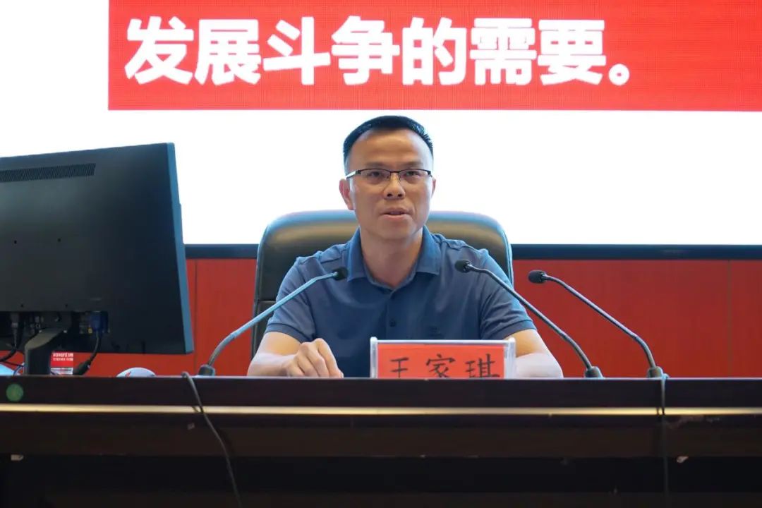 党委委员、宣传统战部部长、思想政治教学研究部负责人王家琪以《认真做好思想政治工作,全面掌握意识形态工作主导权》为题,从准确把握意识形态的本质内涵、为什么说意识形态工作是党的一项极端重要的工作、意识形态面临的严峻形势和挑战、增强思想政治工作的针对性与实效性、牢牢掌握意识形态主导权五个方面,深入阐述了意识形态工作,在学生中传播科学思想文化、引领正确意识形态、帮扶生活心理困难、应对突发事故处置、维护校园安全稳定等方面不可替代的作用。