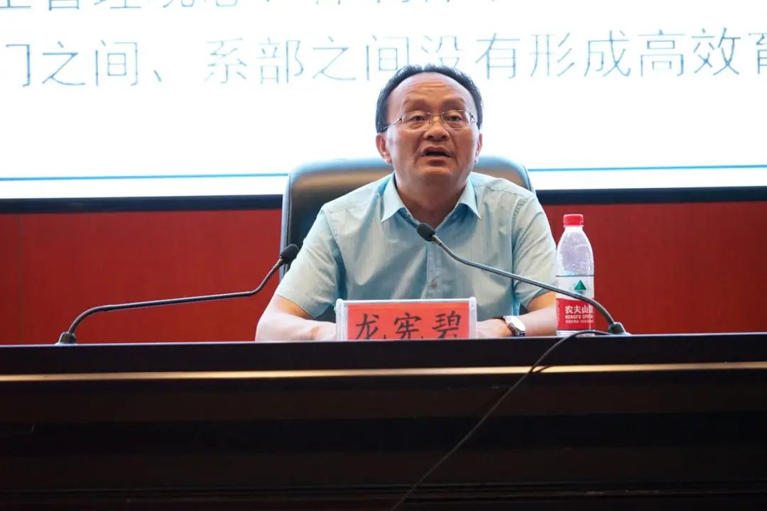 副院长龙宪碧以《做新时代大学生成长成才的导师》为主题,结合《宪法》《民法典》等相关法律法规,从辅导员是开展大学生思想政治教育的骨干力量、高校发展的重要力量、我院学生管理及成长现状分析、成为大学生优秀导师的一些思考、学院要建设良好的辅导员成长环境四个方面,深刻地阐述了辅导员在大学生思想政治教育、高校发展的重要作用,强调作为一名辅导员应该要热爱岗位,深刻理解岗位“九大职责”,勤奋学习,从内心深处去关心、关爱每个学生。