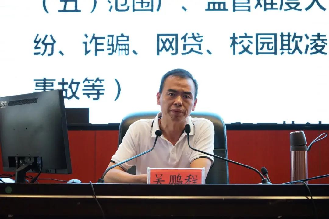 保卫处处长吴鹏程以《怎样抓好校园安全稳定工作》为题,从校园安全稳定工作的特点、校园安全稳定工作的现状、抓好校园安全稳定工作的措施三个方面深入讲解了校园安全稳定工作的重要性和必要性,并提出,要把“三讲三真三知道”“七抓七促”这些安全稳定工作的措施认真落实到学生管理工作中,为学生创造一个安全稳定的学习环境。