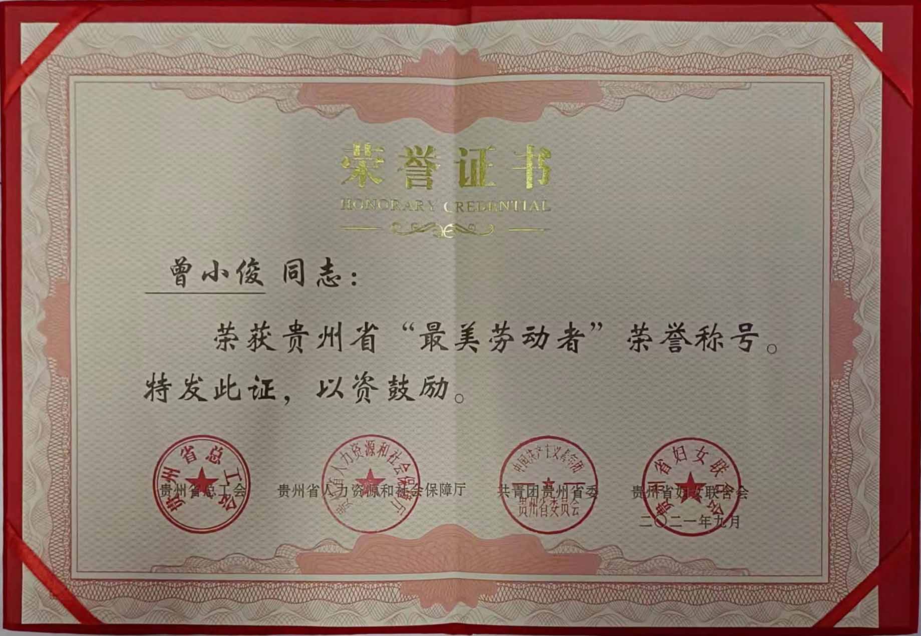 近日,由省总工会、省人社厅、团省委、省妇联共同主办的“中国梦.劳动美——永远跟党走 奋斗新征程”2021年贵州省“最美劳动者”发布了全省各行各业的10007名“最美劳动者”。其中,我院后勤处综合科工作人员曾小俊上榜。