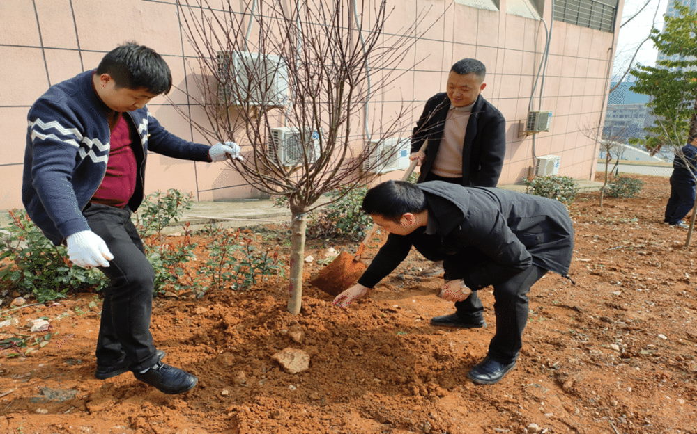 3月3日,学院机关第四党支部组织开展了“共植初心树·共育党建林”志愿植树实践活动。院党委委员、副院长黄国刚参加义务植树,支部全体党员参与。