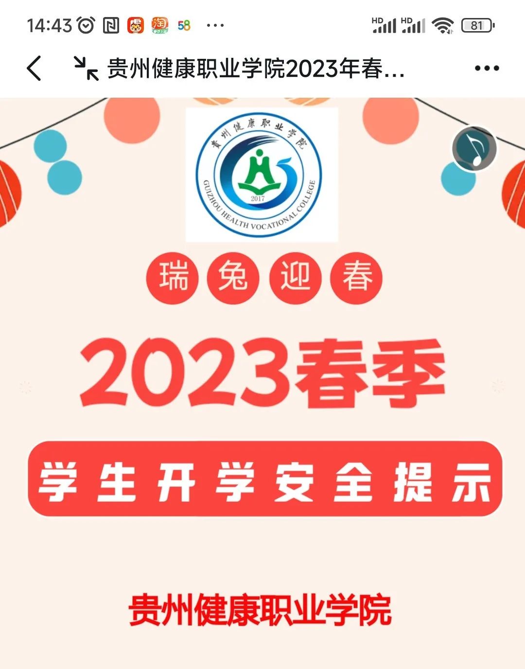 安全提示全覆盖。开学前,通过向全体学生及其家长发布《开学安全提示》H5,提醒做好开学准备的同时,在交通安全、消防安全、饮食安全、防骗防盗、疫情防控等方面做了安全提示,进一步提高了返校师生安全防护意识。