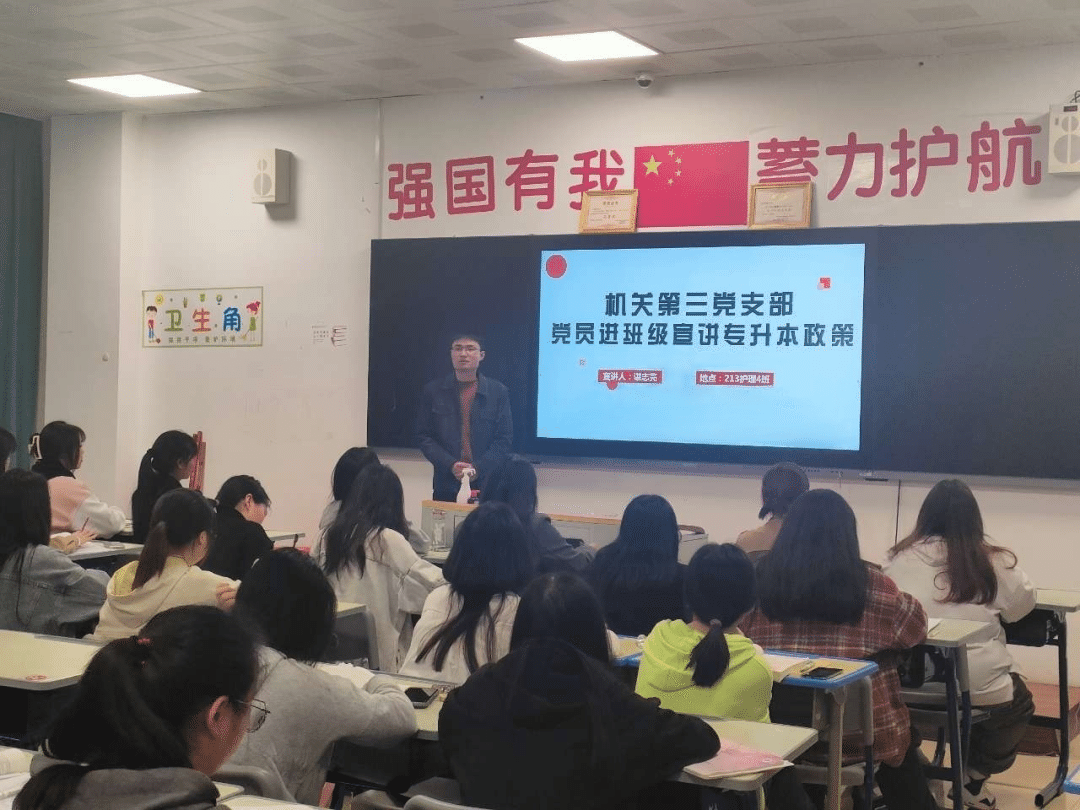 招生就业处联合各系,采取集中宣讲、进班级宣讲等多种形式,全方位、多层次开展专升本政策宣传。通过对普通专升本概念、报名条件、政策照顾和考试录取等内容的深入解读,激励更多学生参与到了专升本的报考队伍中。