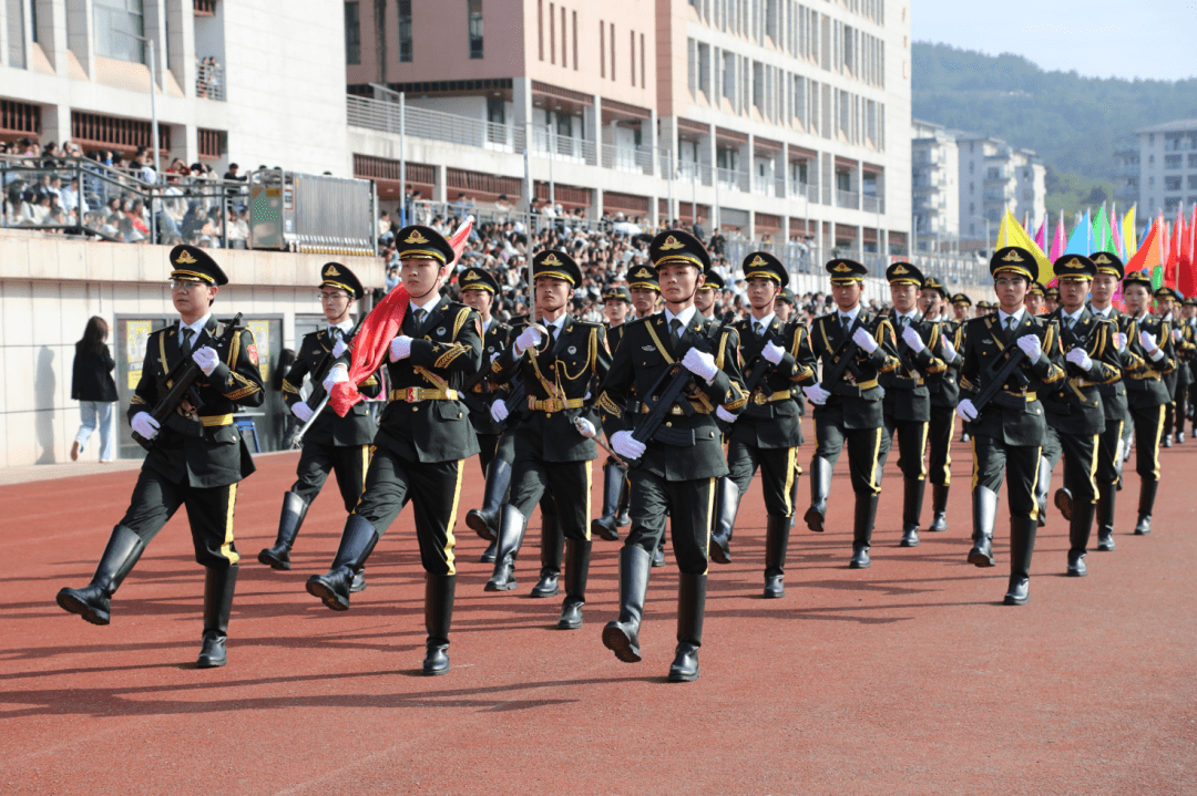 开幕式现场伴随着激情澎湃的《运动员进行曲》,国旗队、校旗队、彩旗队、表演队、各系运动员代表队依次入场。他们面带微笑,意气风发,昂首阔步依次通过主席台,展现了青年学生特有的朝气与活力。