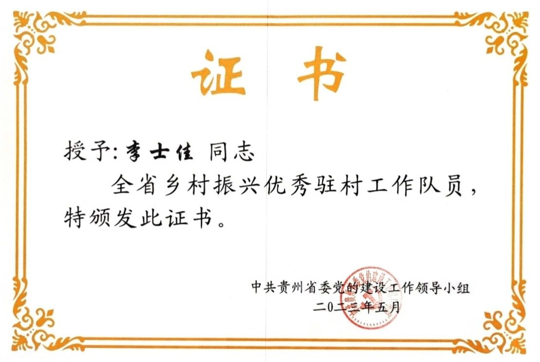 近日,全省驻村帮扶工作总结表彰暨动员部署会在贵阳召开,会上宣读了省委党的建设工作领导小组《关于表彰全省乡村振兴优秀驻村第一书记、全省乡村振兴优秀驻村工作队员和全省乡村振兴驻村帮扶工作先进集体的决定》,我院派驻玉屏侗族自治县朱家场镇谢桥村驻村工作队员李士佳荣获“全省乡村振兴优秀驻村工作队员”荣誉称号,体现了省委、省政府对我院驻村帮扶工作的充分肯定。