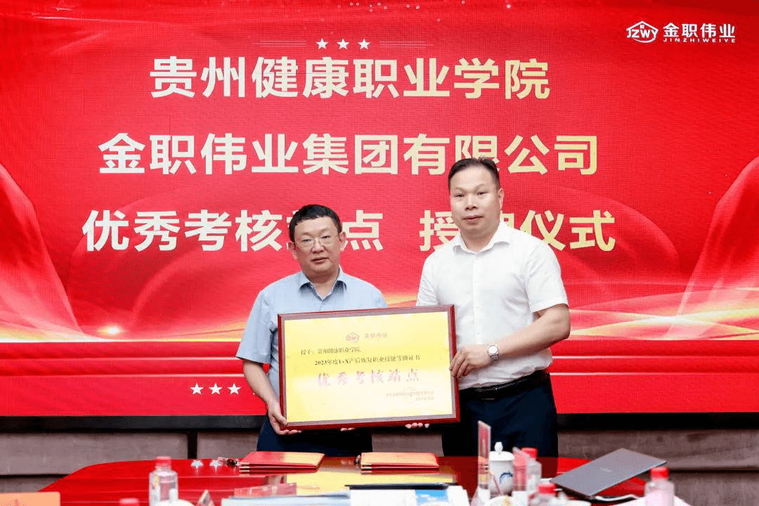会后,金职伟业向我院授牌了“2023年度1+X产后恢复职业技能等级证书优秀考核站点”。