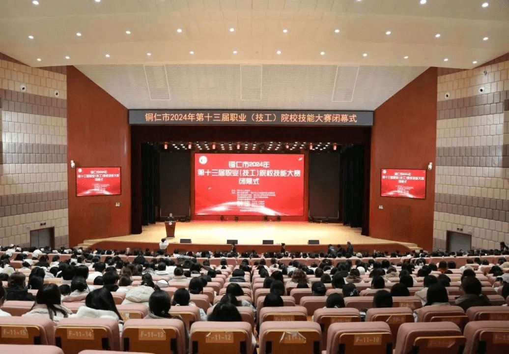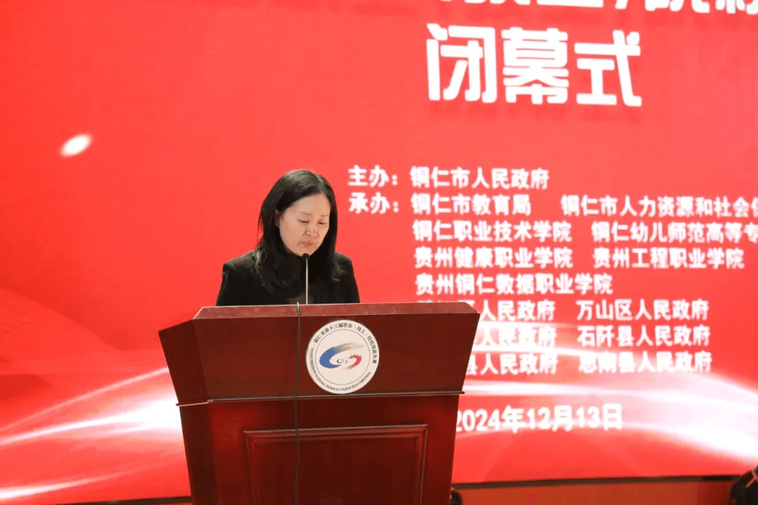12月13日晚,铜仁市2024年第十三届职业(技工)院校技能大赛闭幕式在今年会举行。学校党委书记刘维佳,党委副书记、院长吴国才,铜仁职业技术学院党委委员、副院长王锋,铜仁幼儿师范高等专科学校党委委员、副校长谭欧阳 ,市人社局党组成员、市就业局局长甘馨芳,市委教育工委委员、市教育局党组成员、副局长叶通贤出席闭幕式。吴国才主持闭幕式。