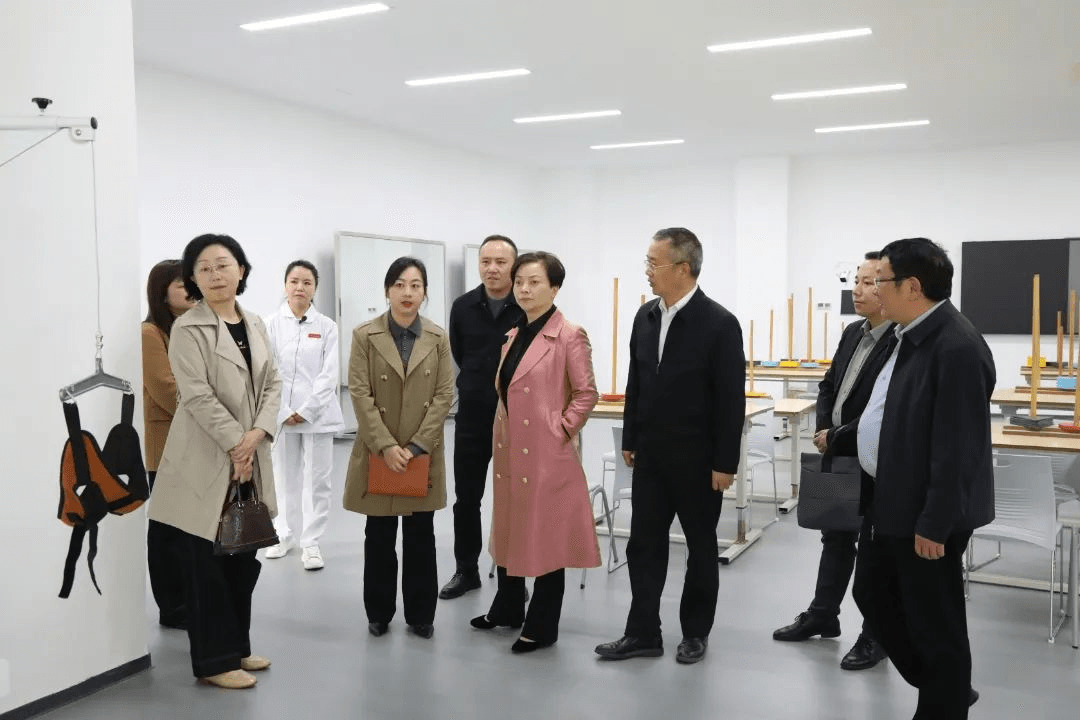 李梦蓉一行到今年会大健康实训基地、养老实训中心、智慧健康养老产教融合实训基地进行了实地调研。