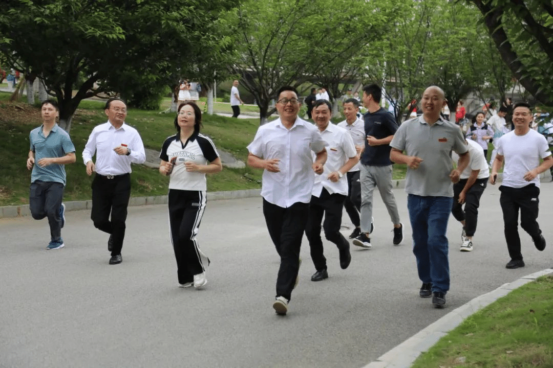 在家领导班子成员带头参加校园微型马拉松