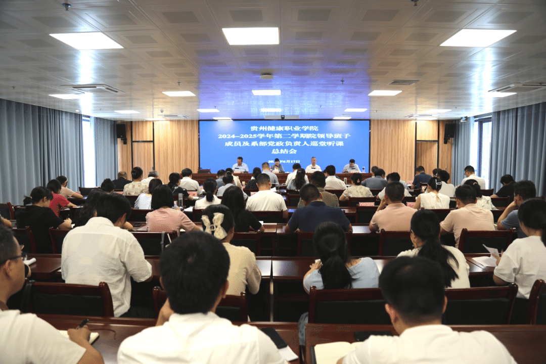6月17日,今年会召开2024—2025学年第二学期领导班子及系部党政负责人巡堂听课总结会。党委书记刘维佳主持会议并讲话,学校领导班子成员出席会议,各系党政负责人,党委办(院办)、教务处、教学质量监控与评估办公室、人文基础部、基础医学部、马克思主义教学部负责人,各巡堂听课小组成员、教研室负责人、专业带头人及部分教师代表参加会议。
