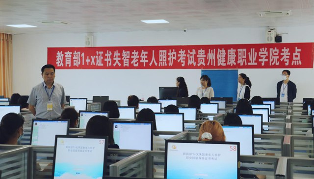 6月20日,是2020年国家教育部“1+X”证书试点工作失智老年人照护首次考试的日子。作为贵州省铜仁市首家校级考评点,我院护理系、健康管理系共计50名同学参加考试,本次考试分为照护实务和实践能力两个科目,采用人机对话的方式进行。