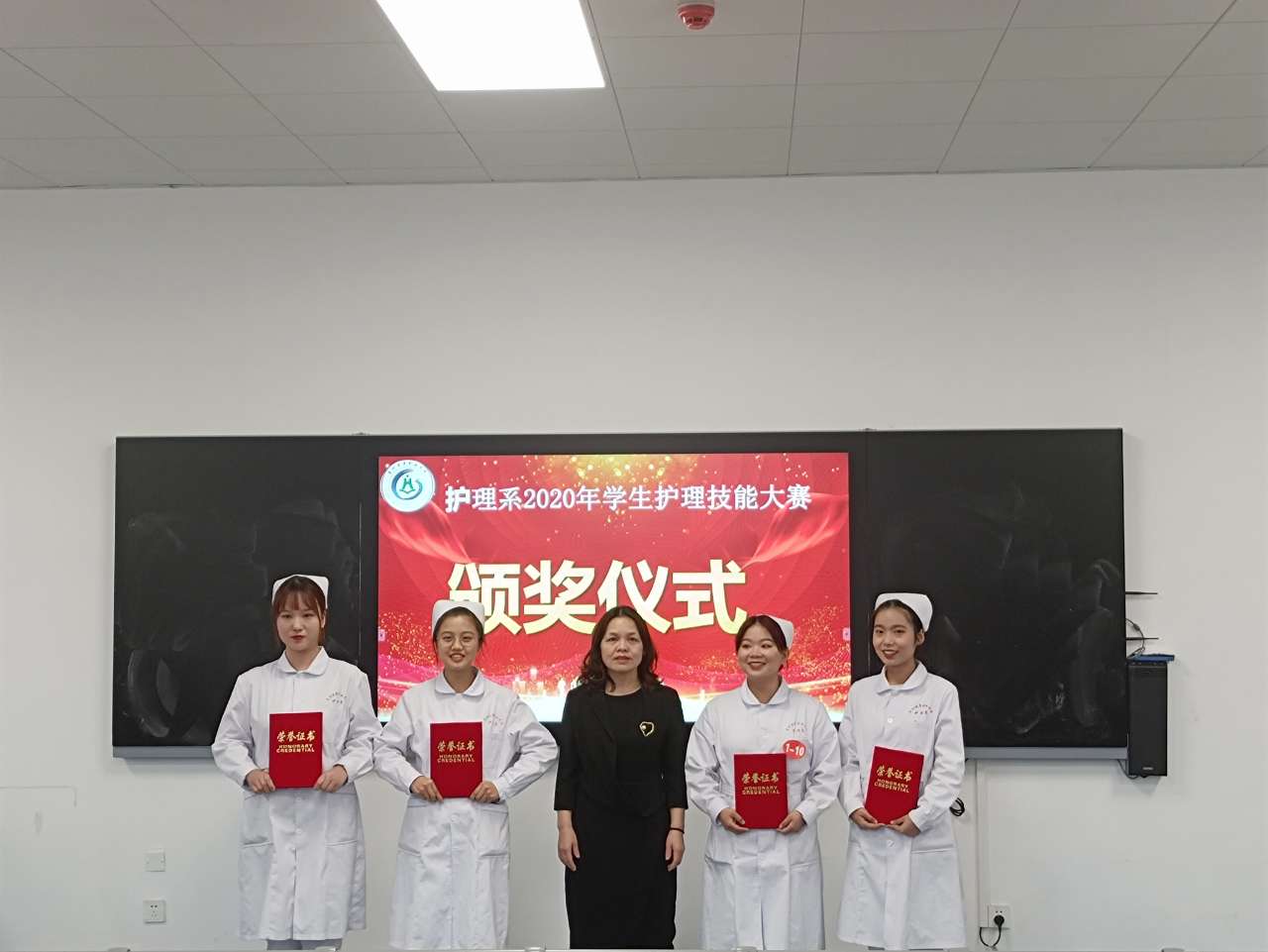 比赛结束后,评委老师针对参赛选手的心理素质、时间把控、细节处理及应变能力等表现进行了精彩点评,接着进行了颁奖仪式。护理系主任刘艳在讲话指出,非常感谢老师和同学们的辛勤付出,点赞选手们的精彩表现,并向大家通报了学院短短三年时间取得的可喜成绩和发展愿景,鼓励同学们要勤学苦练,争取“人人展示技能、人人尽能成才”。她要求同学们要努力做好以下方面:一是要强化品行修为,做一个品德高尚之人;二是要练就精湛技能,做一个能说会做之人,三是要提升综合素养,做一个知礼仪、有礼貌之人。