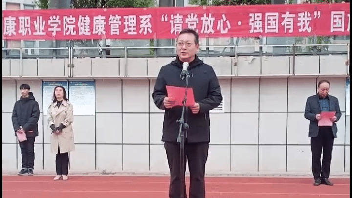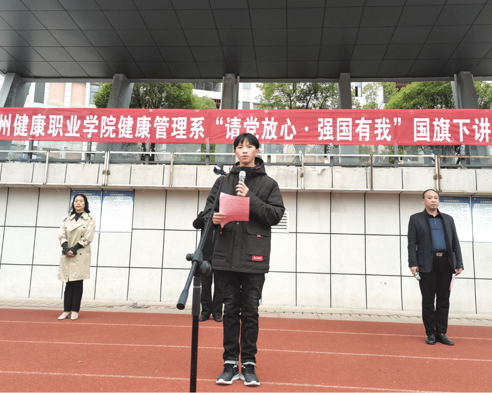 10月18日,我院健管系举行“请党放心•强国有我”为主题的升旗仪式。党委副书记李黔军出席仪式,健管系全体教职工及2020、2021级全体学生参加仪式。