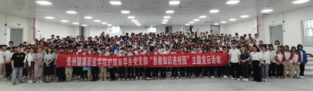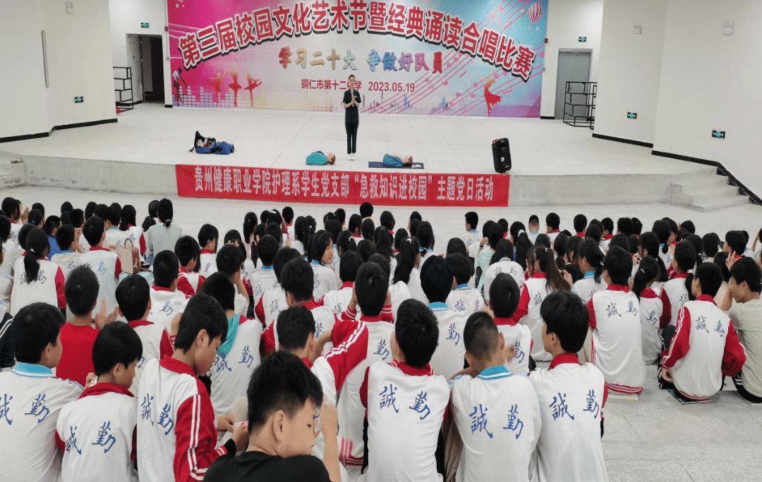 6月2日下午,护理系学生党支部赴铜仁市第十二中学开展了“急救知识进校园”主题党日活动,护理系学生党支部全体党员、铜仁市第十二中学师生代表参加活动。图片