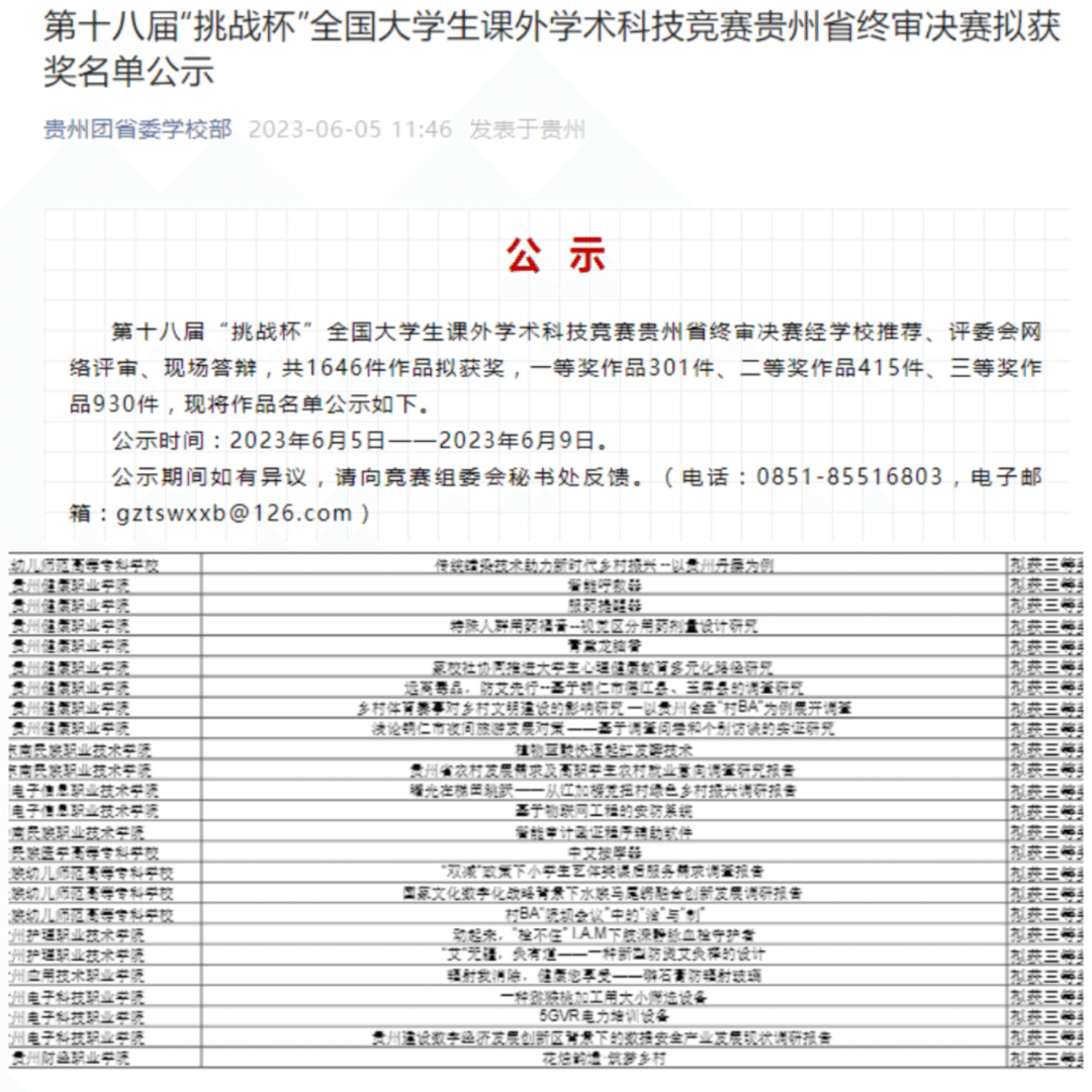 第十八届“挑战杯”全国大学生课外学术科技竞赛结果公示