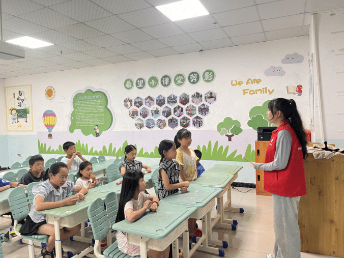 实践队还开展了形式多样的红色文化活动。在红色宣讲环节,队员们用通俗易懂的语言、鲜活生动的案例,结合铜仁本土红色资源向社区居民讲述党的光辉历史和伟大建党精神,组织居民观看爱国主义教育电影,发放知识宣传册,让革命精神深入人心。面对社区小朋友,队员们绘声绘色地讲述红色小故事,带领孩子们感受革命先辈的英勇无畏。教唱儿歌时,孩子们用稚嫩的童声唱出对祖国的热爱。队员们还和小朋友一起绘制红色主题手抄报,用画笔描绘心中的红色记忆。