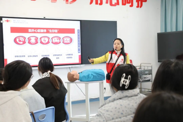 贵州省红十字救护培训师、铜仁职业技术大学教师蒋露叶充分发挥专业优势,借助人体模型、AED模拟设备等教学工具,将抽象的医学知识转化为直观可学的操作指南,清晰阐释了急救操作的核心逻辑与关键细节。