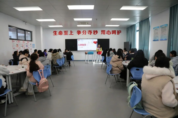“心脏骤停后的黄金抢救时间仅有4-6分钟,及时有效的心肺复苏能极大提升患者生还率。”在核心技能讲解环节,张红着重强调了心肺复苏(CPR)的重要性,结合临床案例详细拆解了胸外按压、开放气道、人工呼吸的操作要领,同时对自动体外除颤器(AED)的使用场景、操作流程及安全注意事项进行了全面说明,引导学员们树立面对突发事件不慌张、科学施救有方法的应急意识。