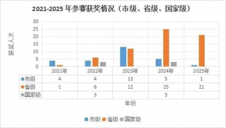 2021-2025年荣获奖项、科研项目及专升本等统计情况