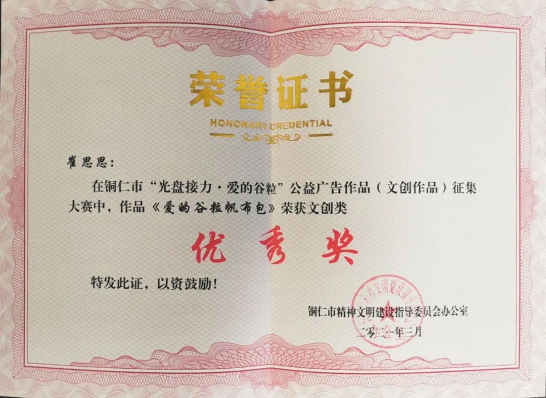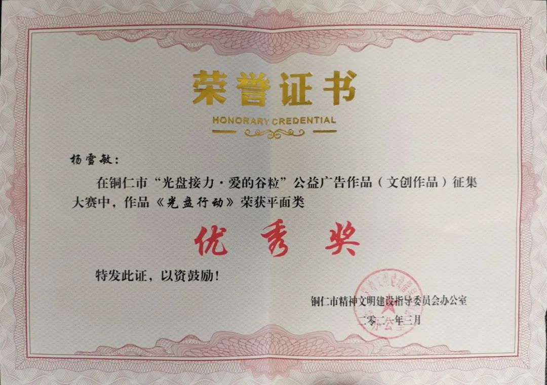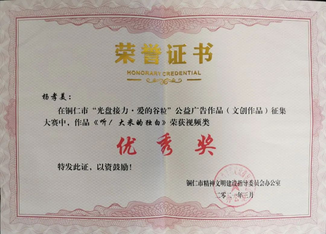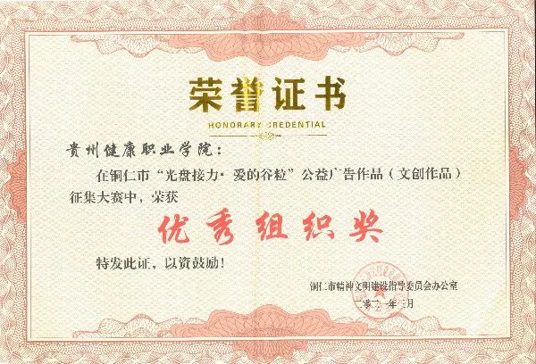 近日,从铜仁市精神文明办发文获知,我院荣获全市“光盘接力·爱的谷粒”公益广告征集大赛优秀组织奖。