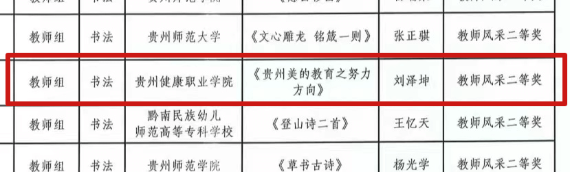 教师刘泽坤书法作品《贵州美的教育之努力方向》荣获教师组书法二等奖