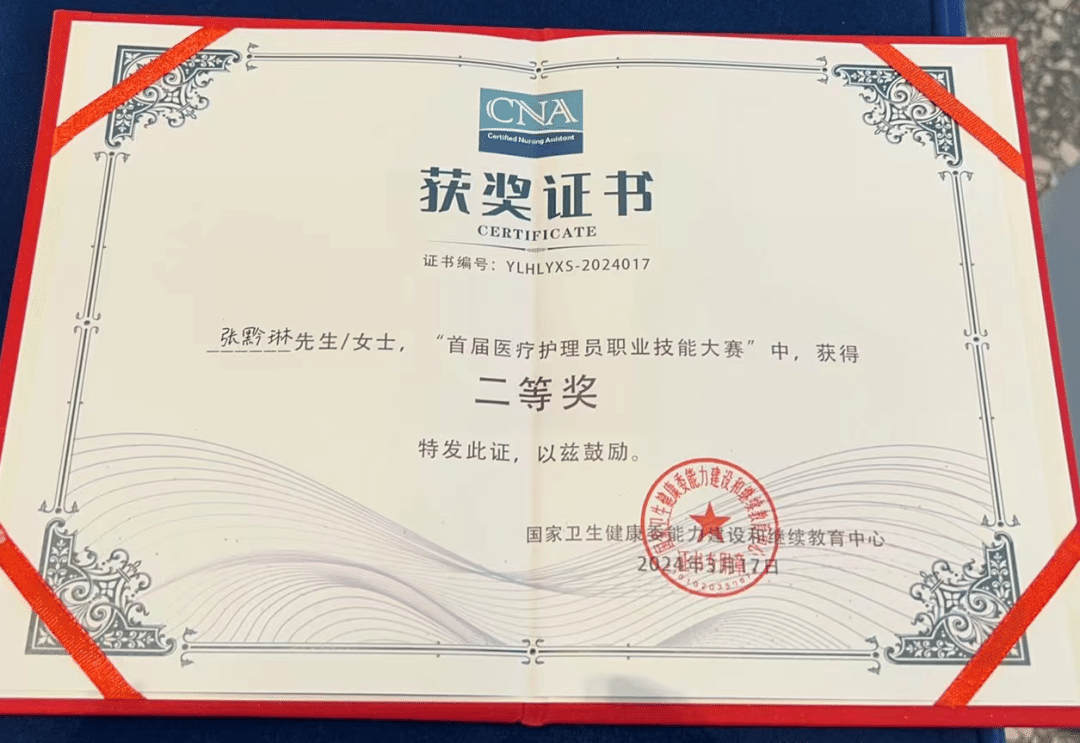 3月15日至17日,在河北省雄安会展中心,今年会代表贵州省参加了由国家卫生健康委能力建设和继续教育中心主办的“首届医疗护理员职业技能大赛总决赛”,我院教师张庆指导的护理系223级护理23班张黔琳同学在比赛中荣获二等奖。