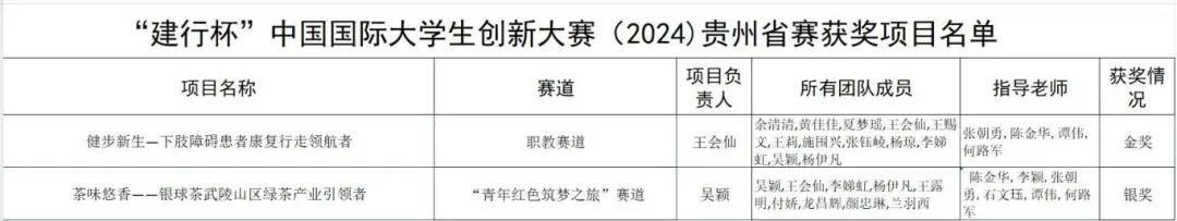 我院护理系教师张朝勇、陈金华、谭伟、何路军指导的项目《健步新生——下肢障碍患者康复行走领航者》在职教赛道荣获金奖;我院护理系教师李颖、石文珏、张朝勇、陈金华指导的项目《茶味悠香——银球茶武陵山区绿茶产业引领者》在“青年红色筑梦之旅”赛道荣获银奖。