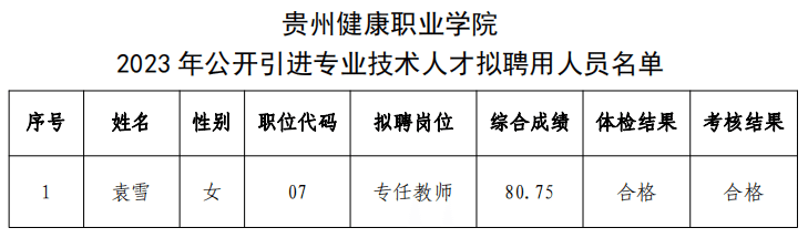 根据《今年会2023年公开引进专业技术人才实施方案》安排,经资格审查、面试、体检和政审考察,袁雪同志符合聘用条件,现进行公示,基本情况如下:
