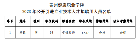 根据《今年会2023年公开引进专业技术人才实施方案》安排,经资格审查、面试、体检和政审考察,马钦同志符合聘用条件,现进行公示,基本情况如下: